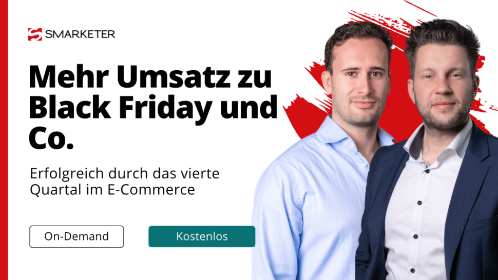 Sind Sie bereit, das Beste aus dem vierten Quartal herauszuholen und Ihre Umsätze zu maximieren? Unser Webinar gibt Ihnen einen tiefen Einblick in die effektivsten Online-Marketingstrategien für Black Friday und Cyber Monday. Ob Sie neu im E-Commerce sind oder Ihre bestehenden Kampagnen verbessern möchten, wir decken alle Themenfelder ab: von Google Ads bis hin zu Google Shopping Feeds.